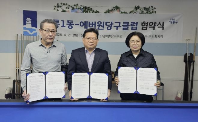 협약식은 에버원당구클럽에서 진행됐으며, 영통1동 행정복지센터, 영통1동 주민자치회, 에버원당구클럽 관계자 등 총 5명이 참석한 가운데 협약서 서명 및 교환, 기념촬영 순으로 진행됐다.