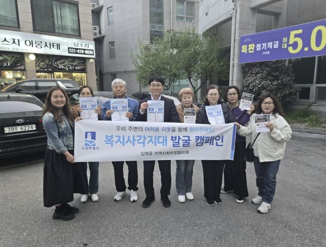 이번 캠페인은 사회적 취약계층에 대한 선제적 지원을 목적으로 추진됐으며, 우리 마을 복지정보 소외계층을 위해 입북동 지역사회보장협의체가 직접 제작한 ‘우리 동네 복지매거진 7호’ 및 홍보물품(비누, 파스 등)을 주민들에게 전달하며 복지사각지대에 놓인 이웃주민 제보를 당부했다.