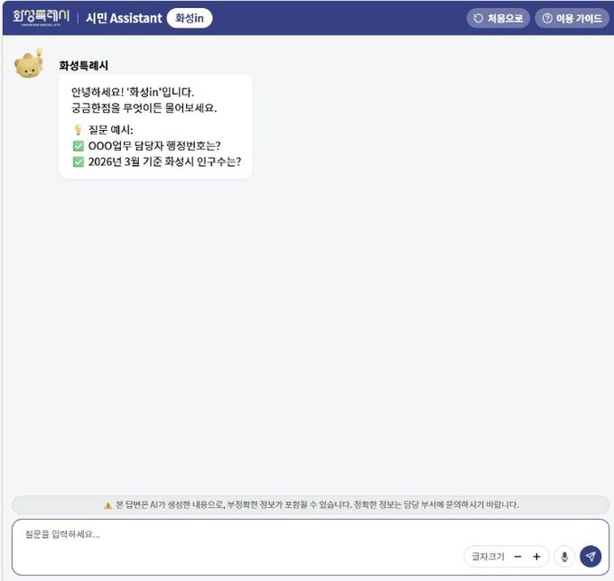 (플러스인뉴스) 화성특례시는 시민 체감형 행정서비스 강화를 위해 23일부터 ChatGPT 기반 대화형 AI 검색 서비스 ‘화성in’을 정식 운영한다.