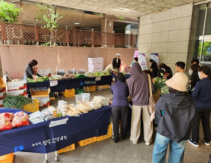 (플러스인뉴스) 수원로컬푸드가 23일 한국마사회 수원지부에서 ‘시민에게 찾아가는 직거래 장터’를 운영했다.