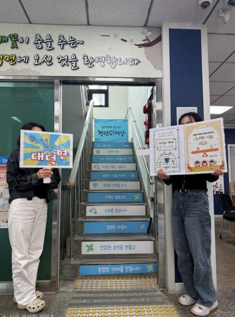 (플러스인뉴스) 대덕면은 주민자치 프로그램과 연계해 미래세대의 순수한 시각을 담은 ‘청렴 한걸음’ 계단을 조성, 기존의 다소 딱딱했던 청사 분위기를 밝고 따뜻하게 변화시키며 민원인들의 호응을 얻고 있다.