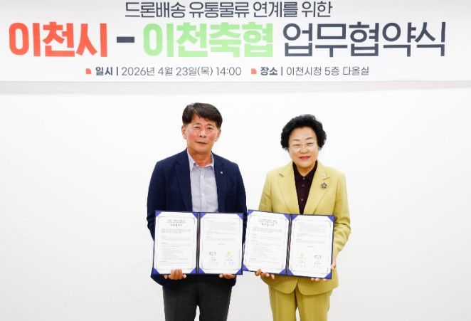 (플러스인뉴스) 이천시는 23일 이천축산업협동조합(이하 이천축협)과 ‘드론배송 유통물류 연계를 위한 업무협약’을 체결했다.