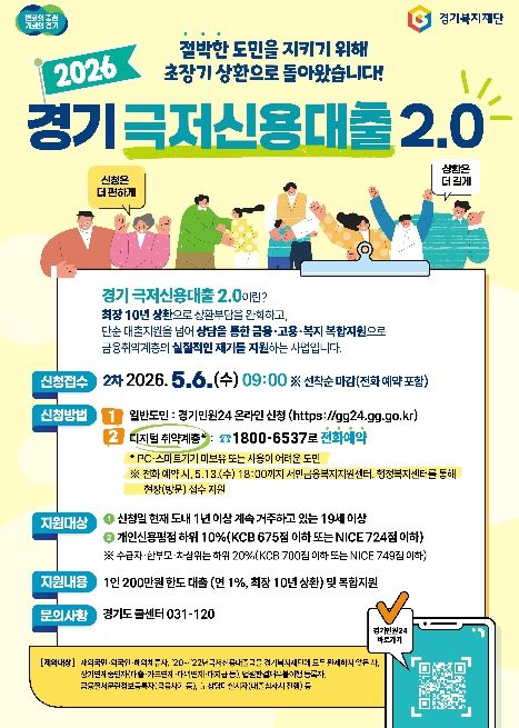 (플러스인뉴스) 경기도가 5월 6일 오전 9시부터 금융취약계층의 생활 안정을 지원하는 ‘경기 극저신용대출 2.0’ 2차 접수를 시작한다.