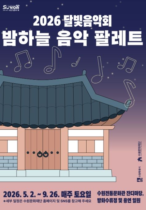 (플러스인뉴스) 수원문화재단은 오는 5월부터 9월까지 국가유산과 자연, 음악이 어우러진 야간 공연 프로그램 '2026 달빛음악회 '밤하늘 음악 팔레트'’를 운영한다.