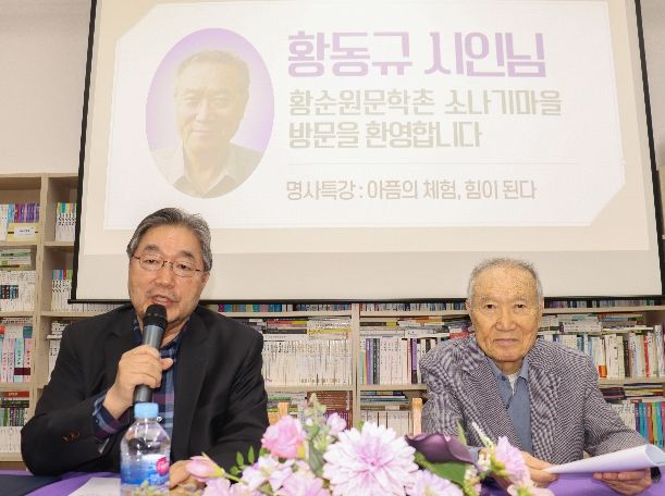 (플러스인뉴스) 황순원 작가의 장남인 황동규(1938~) 시인이 지난 23일 서종면에 위치한 황순원문학촌 소나기마을(촌장 김종회)에서 열린 ‘2026 소나기마을 문학교실’에서 ‘아픔의 체험, 힘이 된다’를 주제로 특별 강연을 진행했다.
