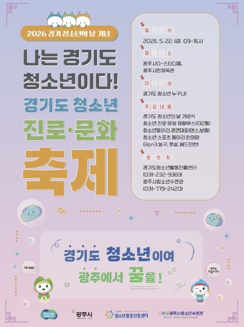 (플러스인뉴스) 광주시는 오는 5월 22일 광주시 G-스타디움 및 광주시민체육관 일원에서 ‘2026년 경기도 청소년 진로·문화 축제’를 개최한다고 29일 밝혔다.