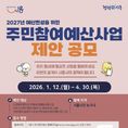 (플러스인뉴스) 시흥시는 오는 4월 30일까지 주민들이 직접 사업을 제안하는 ‘시흥시 주민참여예산 제안’을 신청받는다. 주민참여예산제는 제안, 심사, 선정 등 예산 수립 전 과정에 주민이 참여하는 제도로, 시흥시는 예산의 투명성과 공정성을 높이기 위해 2013년부터 시행해 오고 있다. 시흥시 주민참여예산제는 시 전체의 공익과 지역문제 해결을 목표로 시민 다수에게 수혜가 돌아가는 ‘일반제안사업’과 주민화합, 공동체 조성 등 지역(마을)공동체 활성화를 위해 주민자치회가 직접 계획하고 실행할 수 있는 ‘자치계획형사업’ 두 종류로 구분해 운영된다. 제안 대상은 복지, 환경, 공공질서 및 안전, 교통, 교육, 청소년 등 시민의 일상생활과 밀접한 분야로, 시흥시민이면 누구나 참여할 수 있다. 다만, 법령이나 예산 기준에 위반되는 사업, 선거법 위반 사항 소지가 있는 사업, 완성에 수년이 소요되는 사업, 국ㆍ도비 연계 사업, 특정인 또는 단체에 지원하는 사업, 사유지를 대상으로 하는 사업, 타 기관(경찰ㆍ소방ㆍ교육청 등) 소관 사무 등은 신청 대상에서 제외된다. 공모 신청은 ‘시흥시 주민참여예산 누리집에서 할