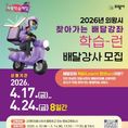 (플러스인뉴스) 의왕시가 시민이 원하는 시간과 장소에 강사를 파견하는 맞춤형 평생학습 서비스인‘2026년 찾아가는 배달 강좌 학습-런(Run)’사업에 활동할 역량 있는 시민을 모집한다. ‘찾아가는 배달강좌 학습-런(Run)’은 지역 내 숨은 인적 자원을 발굴해 생활형 강사로 양성하고, 이를 통해 시민들에게 직접 찾아가는 평생학습 교육을 제공하는 사업이다. 특히, 시민 주도의 학습 문화를 확산하고, 실생활에 밀접한 교육 기회를 확대하는 데 목적이 있다. 향후 진행되는 ‘배달강좌 강사 양성교육’은 4월 30일부터 5월 14일까지 내손동평생학습관에서 3주간 매주 목요일 운영된다. 교육은 ▲현장 중심 강의 기획 ▲교안 작성 ▲디지털 미디어 활용 강의 기법 ▲강사 브랜딩 등으로 구성되며, 총 10시간 이상 참여자에게는 수료증 발급과 함께 ‘배달강좌 학습-런’ 강사 참여기회가 제공된다. 이번 배달 강좌 학습-런 강사 모집 신청은 4월 17일부터 4월 24일까지 의왕시 통합예약시스템에서 가능하다. 김성제 의왕시장은 “찾아가는 배달강좌 학습-런(Run)은 시민의 일상 속으로 직접 찾아가는 의왕시의 중요한 평생학습