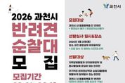 (플러스인뉴스) 과천시가 반려견과 함께하는 산책 활동에 방범 순찰 기능을 접목한 ‘과천시 반려견순찰대’ 신규 대원을 오는 3월 18일 오후 4시까지 공개 모집한다. ‘반려견순찰대’는 주민이 반려견과 거주지 주변 산책을 하며 범죄나 생활안전 위험 요소를 발견할 경우 즉시 112나 120으로 신고하는 주민 참여형 치안 활동이다. 순찰 시에는 견주와 반려견 모두 순찰복을 착용하며 전용 앱을 통해 순찰일지를 작성하게 된다. 선발된 반려견순찰대에게는 활동에 필요한 온라인 교육과 전문 훈련사가 동반하는 합동 교육 순찰의 기회가 제공되며, 연말에는 우수 대원에게 감사장을 수여하는 등 다양한 지원을 통해 자긍심을 높일 계획이다. 모집 대상은 동물등록된 반려견을 키우고 있는 과천 시민이며 강아지 유모차를 이용하는 보호자도 신청할 수 있다. 신청은 3월 18일까지 반려견순찰대 공식 누리집을 통해 가능하다. 선발 심사는 3월 21일 과천 중앙공원 야외음악당에서 진행된다. 전문 훈련사가 반려견의 ▲ 리드 워킹(따라 걷기) ▲ 명령어 이행(기다리기, 앉기) ▲ 외부 자극 반응(대인‧대물‧대견) 등을 종합적으로 평가해 약