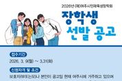 (플러스인뉴스) (재)여주시인재육성장학회는 ‘2026년 여주시인재육성장학회 장학생 선발공고’를 여주시인재육성장학회 홈페이지 및 여주시청 홈페이지에 게시했다 올해 선발인원은 입학우수 36명, 우수 149명, 특기우수 38명, 여주장학생, 재해구호장학생등 5개 분야 223명이며, 조건에 맞는 분야를 선택하여 지원 하면 된다 장학생 신청 접수는 3월 9일부터 3월31일까지로 방문, 우편 또는 온라인 접수가 가능하고, 장학생 선발 및 장학증서 수여식은 5월에 실시할 예정이다. [뉴스출처 : 경기도 여주시]