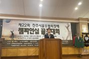 (플러스인뉴스) ‘제22회 진주시골프협회장배 챔피언십 골프대회’가 20일 진주컨트리클럽에서 100여 명의 선수 및 관계자들이 참가한 가운데 성황리에 개최됐다. 진주시골프협회가 주최·주관하고 진주시와 진주시체육회가 후원한 이번 대회는 골프 종목의 저변 확대와 골프 동호인들의 화합의 장을 마련하기 위해 열렸다. 경기는 학생선수와 프로선수를 제외한 진주시 거주 핸디 12 이내의 순수 아마추어 골퍼를 대상으로 남자선수권부와 여자선수권부로 나뉘어 스트로크 플레이 방식으로 진행됐으며 경기 결과에 따라 남자선수권부는 5위까지 여자선수권부는 3위까지 시상이 이뤄졌다. 진주시 관계자는 “협회장배 챔피언십 골프대회가 성황리에 개최된 것을 축하한다”며, “이번 대회를 통해 동호인 간의 우의를 돈독히 하고, 골프의 매력을 시민들에게 널리 알리는 기회가 되기를 바란다”고 말했다. [뉴스출처 : 경상남도진주시]