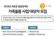 (플러스인뉴스) 경기도가 2026년 최중증 발달장애인 가족돌봄 사업 대상자 145가구를 12월 2일까지 모집한다. 최중증 발달장애인이란 도전적 행동이 심하고 일상생활에 제약을 지닌 통합돌봄이 필요한 발달장애인이다. 경기도는 돌봄이 필요한 모든 도민들을 대상으로 누구나, 언제나, 어디나 빈틈없는 돌봄을 제공하는 360도 돌봄사업을 하고 있다. 최중증 발달장애인 가족돌봄 사업은 이 가운데 ‘어디나 돌봄’ 사업의 하나로 진행한다. 2024년 4월 처음 가족돌봄 사업을 시행한 이래 매달 210가구에 월 40만 원씩 돌봄포인트를 제공해 생필품 구입부터 여가활동 지원까지 다양한 부분에서 사용하여 장애인 당사자와 가족의 생활안정에 기여하고 있다. 2026년 최중증 발달장애인 가족돌봄 사업의 지원 대상은 경기도에서 거주하는 복지관, 직업재활서비스 등 복지서비스 미이용으로 돌봄사각지대에 놓인 만 18세 이상 발달장애인이다. 선정 시 월 40만 원 가족돌봄포인트를 1년간 지원하고 지속적인 모니터링으로 복지서비스와 대상자를 연계하는 서비스를 제공한다. 2026년 모집인원은 145명으로 전년과 다르게 모집인원을 시군별