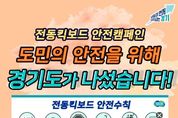 (플러스인뉴스) 경기도는 11월 한 달간 경기도의회, 경기도교육청, 경기 남ㆍ북부경찰청, 경기도교통연수원, 한국도로교통공단, 시군 등 유관기관과 함께 전동킥보드 안전문화 합동캠페인을 추진한다. 도는 전동킥보드 주요 사고 다발지역 및 유동인구 밀집 지역을 중심으로 유관기관 및 시민단체와 연계해 전동킥보드 필수 안전수칙이 담긴 홍보물을 배부하고 경찰과 협력해 현장 계도 활동도 병행한다. 시군별 전광판, 현수막 등 지역 홍보 매체를 적극 활용해 전동킥보드 안전수칙 홍보도 적극 확대할 계획이다. 특히 전동킥보드 사고 발생의 주요 원인인 면허 자격, 이용 연령, 안전모 착용, 동승 금지 의무 등을 집중적으로 안내하고, 교육청과 협력해 청소년 대상 교육도 강화할 방침이다. 윤태완 경기도 광역교통정책과장은 “이번 안전캠페인은 전동킥보드 안전이용 문화가 안착되는 계기가 될 것”이라며 “도에서는 캠페인 기간이 끝나더라도, 경찰청·교육청 등 유관기관과 지속 협력해 전동킥보드 안전사고 예방에 총력을 다할 계획이다”고 말했다. 현재 경기도 내 운영 중인 공유 전동킥보드는 6만 7,866대로 31개 시군 전역