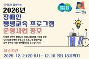 (플러스인뉴스) 안성시는 성인 장애인의 평생학습 권리를 보장하고 평생교육 참여 기회를 확대하기 위하여 경기도와 안성시가 함께 지원하는 '2026년 장애인 평생교육 프로그램 운영' 공모사업을 추진한다. 이번 공모사업은 성인 장애인을 위한 맞춤형 평생교육 프로그램을 발굴‧지원하여 사회참여 기회를 넓히고, 누구나 차별 없이 배움의 기회를 누릴 수 있는 평생학습 환경을 조성하는 데 목적이 있다. 신청 대상은 안성시에 주소(등록)를 둔 장애인 평생교육 기관‧단체이며, 신청 기간은 12월 2일부터 16일까지이다. 모집 규모는 ▲평생교육법 제7진 분류를 기반으로 한 ‘장애인 평생교육 프로그램’ 1개소와 ▲'장애인복지법'에 따른 15개 장애 유형 분류를 기반으로 한 ‘장애유형별 평생교육 프로그램’ 2개소, 총 3개소이다. 선정된 프로그램은 2026년 2월부터 10월까지 운영될 예정이다. 공모사업에 대한 자세한 내용은 안성시청 누리집 및 안성배움e 누리집에 게시된 공고문을 통해 확인할 수 있으며, 신청 서류 또한 해당 누리집에서 내려받을 수 있다. 시 관계자는 “이번 사업을 통해 성인 장애인의 평생학습 접근성을 높