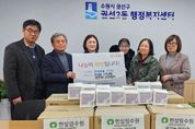 (플러스인뉴스) 수원시 권선구 금곡동은 지난 28일 ㈜케이티스포츠로부터 김장 나눔 행사를 위한 후원금 100만원을 전달받았다고 밝혔다. 이번에 기부된 성금은 김치를 구입하는 데에 사용됐으며, 구입한 김장김치는 지역 내 취약계층 가구에 직접 전달됐다. 이호식 대표이사는 “이번 기부를 통해 지역의 어려운 이웃들에게 실질적인 도움이 되길 바란다며 앞으로도 지역사회와 함께하는 다양한 나눔 활동을 지속적으로 이어가겠다”라고 말했다. 장성임 금곡동장은 “㈜케이티스포츠에서 김장 나눔을 위해 후원금을 전달해 주셔서 감사드린다며, 이번 후원으로 마련된 김장김치가 취약계층의 겨울나기에 큰 도움이 될 것”이라며 “앞으로도 주민들이 따뜻한 겨울을 보낼 수 있도록 지원을 이어가겠다”라고 전했다. [뉴스출처 : 경기도 수원시 권선구]