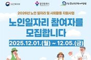 (플러스인뉴스) 용인특례시는 12월 1일부터 5일까지 ‘2026년 노인 일자리 및 사회활동 지원사업’ 참여자를 모집한다. 시는 어르신 일자리사업에 269억원을 투입해 5884명의 일자리를 마련했다. 내년 노인일자리 사업은 4개 유형 101개 사업으로 ▲노인공익활동사업 3413명(월 30시간 활동·29만원 지급) ▲노인역량활용사업 1626명(월 60시간 활동·63만 4000원 지급) ▲공동체사업 615명(근무시간과 급여는 근로계약에 따름) ▲취업지원(취업알선형)230명(근무시간과 급여는 근로계약에 따름)을 모집한다. 노인공익활동사업의 대상은 65세 이상 어르신 중 기초연금수급자나 직역연금수급자다. 노인역량활용사업은 65세 이상(일부 사업은 60세 이상)의 어르신이며, 공동체사업단 및 취업지원(취업알선형)은 60세 이상의 어르신이 참여할 수 있다. 다만 국민기초생활보장법에 따른 ▲생계급여 수급자 ▲건강보험 직장가입자 ▲장기요양보험 등급 판정자 ▲다른 기관의 일자리사업 참여자는 신청 대상에서 제외된다. 사업에 참여를 희망하는 어르신은 신분증과 3개월 이내에 발급한 주민등록등본 등 필요한 서류