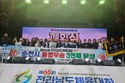(플러스인뉴스) 순천시는 지난 10일부터 13일까지 4일간 구례군 일원에서 열린 제65회 전라남도체육대회에서 종합우승을 차지하며 3년 연속 종합우승의 쾌거를 달성했다. 전남 22개 시군 7,000여 명의 선수단이 참가한 이번 대회에 순천시는 23개 전 종목, 402명의 선수단이 참가해 그동안 갈고닦은 실력과 기량을 유감없이 발휘하며 종합 1위의 영예를 안았다. 종목별로는 배구, 소프트테니스, 족구, 바둑에서 1위를 축구, 복싱에서 2위를 골프, 농구, 검도, 씨름, 유도, 볼링에서 3위를 거두는 등 전 종목에서 고른 활약을 선보였다. 한편 대회 기간 중 8개 시·군 선수 및 관계자 3,000명 이상의 방문객이 지역 내에서 숙박과 식사, 주요 관광지를 방문하는 등 소비 활동을 한 것으로 분석된다. 이는 순천이 교통·숙박·먹거리 등 생활인프라가 잘 갖춰진 도시로, 경기 참가자뿐만 아니라 인근 지역 선수단의 추가 체류를 유도하며 소비 확대에 기여한 것으로 평가된다. 이에 따라 숙박·외식업 중심 직접 소비 및 연관 산업에 미치는 효과까지 총 경제유발효과는 약 23억 원 이상에 이르는 것으로 나