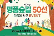 (플러스인뉴스) 산림청은 숲길을 활용한 국민의 여가 활성화 및 지역경제 활성화를 위해 ‘2026년 명품숲길 50선 완주 인증제’를 11월 15일까지 운영한다고 13일 밝혔다. ‘명품숲길 50선 완주 인증제’는 2025년 첫 도입 이후 국민의 높은 관심과 참여로 총 23명의 완주자를 기록했으며, 올해는 2년 차를 맞아 참여 기회를 확대하고 이용 편의성을 개선했다. 이번 인증제는 스마트폰 앱 ‘모바일 스탬프 투어’를 활용한 GPS기반 온라인 인증과 숲길 현장 스탬프를 활용한 오프라인 인증 방식을 병행해 누구나 쉽게 참여할 수 있도록 운영한다. 참여자가 50개소를 모두 완주하면 앱을 통해 전자 인증서가 자동으로 발급되며, 실물 인증서는 모바일 앱을 통해 별도로 신청할 수 있다. 전국 50개 명품숲길을 모두 완주할 경우 산림청장 명의의 완주 인증서와 기념품이 제공된다. 앱 설치 방법 등 인증제에 대한 자세한 사항은 산림청과 숲나들e 누리집을 통해 확인할 수 있다. 조영희 산림청 산림복지국장은 “명품숲길 완주 인증제는 국민이 숲길을 보다 적극적으로 경험하고 가까워지는 계기이다.”며, “이번 기회
