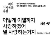 (플러스인뉴스) 경기도와 경기문화재단이 12월을 맞아 올해를 마무리하는 문화예술교육 비평웹진 〈지지봄봄〉 45호를 발행했다. ‘어떻게 이별까지 사랑하겠어, 널 사랑하는 거지’를 제목으로 한 이번 호는 현장의 지속가능성, 행정 구조의 과제, 비평의 역할 등 문화예술교육이 직면한 주요 쟁점을 깊이 있게 다룬다. 먼저, 기획자 유모라의 글 '예술인으로 존재하고 연대하기 위하여 - 홍우주 예술학교 A.L.T.O. 탄생기'는 11년 차 홍우주사회적협동조합이 ‘홍대앞 정신’을 잇기 위해 시작한 ‘예술학교 A.L.T.O.’의 배경과 의미를 조명한다. 파일럿 프로그램을 통해 확인한 연대의 가능성과 함께, 홍우주가 그리는 지속 가능한 지역 문화예술 생태계를 탐색한다. ‘게릴라노동자들’의 대담 '문화재단 실무자 탈출기 - 『나라를 위해서 일한다는 거짓말』 함께 읽기'에서는 전 문화재단 실무자들이 공직사회의 조직 문화와 업무 환경을 돌아본다. 노한동의 책을 매개로 공공 조직의 현실을 비판적으로 되짚고, 여전히 현장에서 고군분투하는 실무자들에게 연대와 응원의 메시지를 전한다. 광주광역시 청소년삶디자인센터 김소연 기획실장 인터뷰 '이
