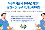 (플러스인뉴스) 여주도시공사는 공공서비스 품질 향상과 조직 경쟁력 강화를 위해 2026년 제2회 일반직 및 공무직, 기간제 채용을 실시한다고 밝혔다. 이번 채용은 능력과 직무역량을 중심으로 한 블라인드 채용 방식으로 진행되며, 학력·출신지·신체조건 등 불합리한 차별 요소를 배제하고 직무수행에 필요한 역량을 공정하게 평가할 계획이다. 이번 채용을 통해 총 17명을 선발하며, 일반직 6명, 공무직 2명, 기간제 9명을 채용한다. 일반직은 기술직(기계·건축)과 행정직(사무·총무) 분야에서 선발하며, 공무직은 기계관리원 직무를 대상으로 한다. 기간제 근로자는 수영강습원, 체력단련원, 사무보조, 환경미화 분야에서 공공시설 운영 지원을 위한 직무에 배치될 예정이다. 원서접수는 4월 3일부터 4월 13일 오후 6시까지 온라인으로 진행되며, 서류전형 합격자를 대상으로 필기전형(기간제는 필기전형 없이 면접전형만 실시)과 면접전형을 거쳐 5월 15일 최종 합격자를 발표할 예정이다. 필수 자격요건 및 자세한 사항은 여주도시공사 홈페이지에서 확인할 수 있다. 공사 김철환 사장은 “이번 채용을 통해 직무역량과 책임감을 갖