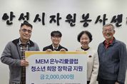 (플러스인뉴스) 지난 25일, 안성시자원봉사센터는 머크일렉트로닉머티리얼즈㈜ 임직원 봉사단인 ‘머크 온누리愛클럽’과 함께 관내 학생을 위한 ‘희망장학금’ 전달식을 가졌다. 이번 장학금은 학업에 대한 열의가 높고 성실한 지역 내 학생을 격려하기 위해 마련됐으며, 머크 임직원들이 자발적으로 조성한 후원금을 바탕으로 전달되어 의미를 더했다. 머크 온누리愛클럽은 그동안 안성 지역사회를 위해 다양한 봉사활동과 기부를 이어오며 기업의 사회적 책임을 실천하고 있는 임직원 중심의 봉사단체다. 김동성 센터장은 “어려운 외부 환경에서도 꿈을 향해 정진하는 학생에게 이번 장학금이 큰 힘이 되길 바란다”라며, “매년 잊지 않고 지역 인재 양성을 위해 따뜻한 정성을 모아주시는 머크 온누리愛클럽에 깊은 감사를 드린다”라고 말했다. 머크 온누리愛클럽 정재훈 회장은 “임직원들의 작은 정성이 학생의 소중한 꿈을 지탱하는 마중물이 되길 바란다”라며, “우리 주변의 이웃을 살피고 지역사회와 함께 성장할 수 있는 나눔 활동을 지속적으로 펼치겠다”라고 화답했다. 한편, 안성시자원봉사센터는 다양한 이해관계자의 지역사회 공헌 활
