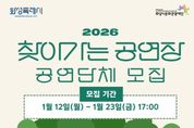 (플러스인뉴스) (재)화성시문화관광재단은 1월 12일부터 1월 23일까지 ‘2026 찾아가는공연장’ 참여 공연단체를 모집한다고 밝혔다. ‘찾아가는 공연장’은 화성시의 곳곳에서 다양한 장르의 공연을 제공함으로써 시민들의 일상적인 문화예술 관람을 돕기 위한 사업으로, 2009년부터 시작된 화성시문화관광재단의 대표 문화사업 중 하나다. 지난 2025년도에는 공개 모집을 통해 40개의 공연단체를 선정했으며, 문화취약계층에 방문공연, 공원 광장 거리공연 등을 통해 다양한 장르의 공연으로 화성시민과 함께했다. ‘2026 찾아가는 공연장’은 약 140회차의 공연을 목표로 운영된다. 이번 공연단체 모집은 3년 이상의 공연활동 경력이 있는 공연단체라면 지역, 장르에 상관없이 신청가능하다. 접수는 1월 12일부터 23일까지 온라인으로만 가능하며, 1차 서류‧영상 심사, 2월 9일~10일 2차 실연‧면담 심사를 거쳐 2월 12일에 최종 선정단체 총 35팀을 발표할 예정이다. 화성시문화관광재단 안필연 대표이사는 “지역과 장르의 제한을 두지 않는 만큼, 화성시 곳곳에서 재능을 뽐내줄 다양한 예술 공연단체들의 많은 관심과 지원을 바란다