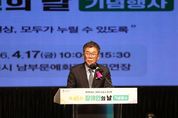 (플러스인뉴스) 평택시의회는 4월 17일, 남부문화예술회관 대공연장(평택시 비전동)에서 열린‘제46회 장애인의 날’ 기념행사에 참석해 포용적인 지역사회 조성에 힘을 보탰다. 이날 기념행사에는 이윤하 의장을 비롯한 시의원들이 참석했으며, 경기도지체장애인협회 평택시지회장을 포함한 9개 장애인단체 연합 관계자 등 약 1,000여 명이 함께했다. 기념행사는 장애인 인권 헌장 낭독, 감사패 시상, 기념사, 격려사 순으로 진행됐으며, 이어진 2부에서는 경기도 문화예술단 등의 축하공연이 펼쳐져 화합의 시간을 가졌다. 또한 시화, 캘리그라피, 원예 전시 프로그램과 장애유형별 특성을 고려해 수어·문자 통역, 현장 해설, 휠체어 보장구 수리 부스도 마련됐다. 이윤하 의장은 “장애인의 날은 우리 사회가 함께 살아가는 공동체로 나아가기 위한 의미를 되새기는 소중한 날”이라며 “누구나 존중받으며 당당한 사회의 구성원으로 살아갈 수 있는 환경을 만드는 것이 중요하다”라고 말했다. 이어 “오늘은 서로를 격려하고 희망을 나누는 뜻깊은 시간이 되길 바라며 평택시의회도 장애인의 권익 향상을 위해 지속적으로 노력하겠다”고 밝혔다.