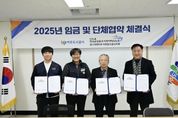 (플러스인뉴스) 여주도시공사와 민주노총 공공운수노조 여주도시공사지회는 12월 9일 여주도시공사 사옥에서 2025년 임금 및 단체협약 체결식을 개최했다고 밝혔다. 이번 협약은 상호 신뢰와 존중을 바탕으로 진행된 성실한 교섭의 결실로, 노사 상생과 지속 가능한 발전을 위한 중요한 발판이 될 전망이다. 공사와 노동조합은 이번 협약을 통해 직원들이 안정적인 근무여건 아래 역량을 발휘할 수 있는 환경을 조성하고, 공공기관으로서 사회적 책임을 다하기 위한 제도 개선과 협력 체계를 강화해 나갈 방침이다. 임명진 사장은 “이번 임금·단체협약은 노사 간 소통과 이해를 바탕으로 이루어낸 결실”이라며, “앞으로도 신뢰 기반의 노사 협력을 통해 시민에게 더 나은 공공서비스를 제공할 수 있도록 노력하겠다"고 밝혔다. 여주도시공사는 앞으로도 합리적인 노사관계 정착을 위해 소통과 협력을 강화하고, 시민 중심의 공기업으로서 책임과 역할을 다하기 위한 다양한 노력을 이어갈 계획이다. [뉴스출처 : 경기도 여주시]