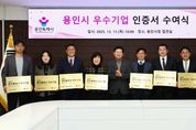 (플러스인뉴스) 용인특례시는 11일 시청 접견실에서 ‘2025년 용인시 우수기업 인증제’ 심의 결과 선정된 ‘올해의 우수기업’ 10개 사에 인증서를 전달했다. 이상일 용인특례시장은 이들 기업 대표와 임직원들을 만나 축하와 격려 인사를 나누고 우수기업 인증서와 현판을 전달했다. 이상일 시장은 “우리 경제가 어려운 가운데서도 기업 활동을 잘 해주셔서 우수기업으로 선정된 것을 축하드린다”며 “각자 분야에서 그동안 많은 노하우를 쌓아왔기에 경제가 어려운 가운데서도 성과를 냈고, 우리 지역 경제에도 큰 보탬이 돼 주셔서 감사드린다”고 말했다. 이 시장은 “기업 활동으로 한 가족의 가장은 힘을 얻어 가정을 잘 꾸려갈 수 있고, 신규 일자리를 찾는 사람에게는 희망을 주셨다”며 “기업인들이 활동하실 수 있도록 환경을 잘 개선해 나갈 것”이라고 했다. 시는 매년 경영 실적, 기술·품질 경쟁력, 지역사회 기여도 등 다양한 지표를 종합 평가해 지역경제 발전에 기여한 중소기업을 우수기업으로 인증하고 있다. 올해 선정된 기업은 ▲㈜대성티엠씨 ▲신명이엔씨㈜ ▲주식회사 에이드로 ▲㈜에이치에스씨엠티 ▲주식회사 에코