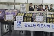 (플러스인뉴스) 영통구 광교1동은 지난 2월 11일, 설 명절을 앞두고 관내 단체와 기관의 따뜻한 나눔이 이어지는 가운데 ‘설 명절 이웃나눔 전달식’을 개최했다고 밝혔다. 광교1동에 따르면, 이번 전달식에는 동남용역이 후원한 햄 40세트와 시립광교동어린이집에서 정성껏 준비한 생필품 꾸러미 40박스가 전달됐다. 또한 광교1동 지역사회보장협의체에서 마련한 후원금과 광교1동 공동모금회를 통해 준비된 떡국떡, 전, 나물, 과일 등 명절 음식도 함께 전달돼 뜻깊은 의미를 더했다. 특히 이번 나눔은 기업과 보육기관, 지역 복지단체가 한마음으로 참여해 설 명절을 앞두고 소외되기 쉬운 이웃들에게 따뜻한 정을 전하며 지역사회에 훈훈한 분위기를 조성했다. 광교1동은 이날 전달된 성금과 물품을 저소득 가정과 취약계층, 홀몸 어르신 등 도움이 필요한 이웃들에게 전달해 따뜻하고 풍성한 설 명절을 보낼 수 있도록 지원할 예정이다. 송숙영 광교1동장은 “설 명절을 맞아 어려운 이웃을 위해 소중한 정성을 모아주신 모든 분들께 깊은 감사의 말씀을 드린다”며, “전달받은 성금과 물품은 꼭 필요한 이웃들에게 정성껏 전달해 지역사회