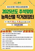 (플러스인뉴스) 오산시는 민족 최대 명절 추석을 맞아 오는 24일(수)부터 26일(금)까지 3일간 오산시청 광장에서 ‘추석맞이 자매도시 농특산물 직거래장터’를 개최한다고 밝혔다. 올해 직거래장터에는 영동군, 속초시, 순천시, 진도군, 남해군, 장수군, 남원시, 공주시, 오산시 등 총 9개 시군에서 24개 업체가 참여한다. 규모 있는 장터답게 제수용품부터 선물세트까지 명절 상차림에 필요한 다양한 특산품을 만나볼 수 있다. 영동군의 포도·곶감·와인, 속초시의 젓갈류·명태강정, 순천시의 홍차·전통장, 진도군의 김·전복·울금, 공주시의 햇밤과 장류, 남원시의 강정·추어탕, 오산시의 세마쌀·전통주·호두정과 등 전국 각지의 특산품이 한자리에 모인다. 시중보다 저렴하게 판매돼 시민들의 장바구니 부담을 덜어줄 전망이다. 시는 이번 장터를 통해 자매·우호도시 농가에는 안정적인 판로를 제공하고, 시민들에게는 믿을 수 있는 농특산물을 만날 수 있는 기회를 마련해 도농 상생의 의미를 더할 계획이다. 이권재 오산시장은 “추석 장터를 통해 시민들께서 질 좋은 농특산물을 합리적인 가격에 구입하시고, 자매·우호도시 농가에도 힘