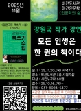 (플러스인뉴스) 평택시 비전도서관은 오는 11월 20일 저녁 7시 '강원국의 책 쓰기 수업'의 강원국 작가를 초청하여 ‘모든 인생은 한 권의 책이다’를 주제로 야간 인문학 강연을 진행한다. 작가의 글쓰기 비법이 담겨 있는 '강원국의 책 쓰기 수업' 강연을 통해 시대가 요구하는 책 쓰기, 책을 쓰는 방법, 책을 쓰면 얻는 것들을 통해 ‘책 쓰기’를 위한 구체적인 방법을 나누면서 글쓰기를 넘어 책 쓰기까지 도전하고 싶은 사람들에게 글쓰기 방법은 물론 자신감과 용기를 심어줄 것으로 기대된다. 강원국 작가는 대통령비서실 공보수석실 행정관과 연설비서관을 역임했으며 40여 년간 글을 쓰며 여러 권의 글쓰기 책을 펴냈다. 지은 책으로는 '대통령의 글쓰기', '강원국의 글쓰기', '나는 말하듯이 쓴다', '강원국의 필사집' 등이 있다. 강연은 도서관 누리집에서 신청할 수 있다. [뉴스출처 : 경기도 평택시]