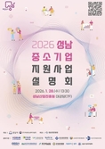 (플러스인뉴스) 성남시는 성남산업진흥원과 함께 오는 1월 28일 성남산업진흥원 대강당(정자동 킨스타워 7층)에서 ‘2026 성남 중소기업 지원사업 설명회’를 개최한다. 이번 설명회에서는 참석 기업을 대상으로 자금, 수출, 연구개발(R&D), 기술보호, 소상공인 지원, 고용 지원 등 다양한 분야의 중소기업 지원사업을 종합적으로 안내할 예정이다. 행사에는 성남시와 성남산업진흥원을 비롯해 경기중소벤처기업청, 중소벤처기업진흥공단, 코트라(KOTRA), 기술보증기금, 신용보증기금 등 총 14개 기관이 참여해, 성남 지역 기업들이 여러 기관의 지원제도를 한자리에서 확인할 수 있는 기회를 제공한다. 아울러 설명회 당일에는 지원사업 안내 책자를 배포하고, 참여 기관별 1:1 상담 부스를 운영해 기업 상황에 맞는 맞춤형 상담을 진행할 계획이다. 성남산업진흥원 이창주 경영안전실장은 “이번 설명회는 지역 기업들에게 지원사업을 보다 신속하게 안내하기 위해 지난해보다 일정을 앞당겨 개최하게 됐다”며 “더 많은 기업들이 참석해 2026년 지원사업을 이해하고 적극 활용하기를 바란다”고 말했다. 설명회는 1월 28