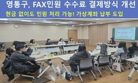 (플러스인뉴스) 수원시 영통구가 지난 31일 시민의 민원 편익을 높이기 위해 FAX민원 수수료 결제방식을 전면 개선했다. 앞으로 사립대학교 졸업증명서 등 FAX민원 발급 시에도 현금 외에 가상계좌를 통한 납부가 가능해져, 현금 미소지로 인한 불편이 크게 줄어들 전망이다. 기존에는 주민등록등본, 인감증명서 등 일반 제증명 수수료는 카드나 현금 결제가 가능했지만, FAX민원 중 사립대학 졸업증명서·성적증명서·재학증명서 등은 현금으로만 수납이 가능해 민원인의 불만이 꾸준히 제기됐다. 특히 정부24를 통해 대학 민원을 신청한 뒤 기관을 방문하는 시민 중 카드만 소지한 비율이 50% 이상으로, 현금 결제로 인한 불편 사례가 빈번했다. 이에 영통구는 종합민원과 및 12개 동 행정복지센터 FAX민원 담당자 회의를 열고 ‘세입세출외현금납부(가상계좌) 매뉴얼’을 공유했다. 담당자 의견을 수렴해 시스템 적용 방안을 논의한 결과, 가상계좌를 활용한 결제 절차를 마련해 현금 없이도 민원수수료 납부가 가능하도록 했다. 이번 개선으로 모든 FAX민원 제증명 수수료를 현금, 카드, 가상계좌를 통해 납부할 수 있게 되면서, 민원인의 결제