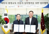 (플러스인뉴스) 파주시는 지난 22일, 서강대학교 본관에서 김경일 파주시장과 서강대학교 심종혁 총장 등이 참석한 가운데 서강대학교와 2026년 '일생일대 프로젝트'를 공동 기획·운영하기 위한 평생교육 진흥 업무협약을 체결했다고 밝혔다. 이번 협약은 파주시의 대표적인 대학 연계 평생학습 사업인 '일생일대 프로젝트'를 서강대학교와 함께 체계적으로 추진하고자 마련됐으며, 이번 협약을 계기로 2026년에도 '일생일대 프로젝트'를 더욱 적극적으로 확대 추진해, 시민 누구나 전 생애에 걸쳐 원하는 배움을 누릴 수 있도록 명실상부한 평생학습 도시를 실현해 나갈 계획이다. '일생일대 프로젝트'는 하나의 읍면동 평생학습센터와 하나의 대학을 일 대 일로 연계해, 시민들의 생활권 가까이에서 고품격 대학 교육의 기회를 제공하는 경기도 최초의 파주형 평생학습 핵심 모델이다. 심종혁 서강대학교 총장은 “서강대가 가진 교육 철학과 전문 역량을 바탕으로, 시민 개개인의 삶의 역량을 향상시키고 지역 사회에 긍정적인 변화를 가져오는 실질적인 프로그램을 설계할 것”이라며, “이번 협력이 지역 대학의 사회적 책무를 실현하는 모범 사례가 되길 기대