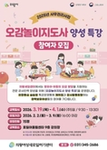 (플러스인뉴스) 의왕시 여성새로일하기센터가 '오감놀이지도사 양성 특강'의 교육생을 모집한다. 이번 특강은 최근 수요가 증가하고 있는 영유아 오감놀이 교육 분야에 특화된 전문 강사 양성을 목표로, 관내 여성 구직자의 취업 기회 확대를 위해 마련됐다. 교육과정은 실무 중심 프로그램으로 구성됐으며, 주요 내용은 ▲영유아 뇌 발달 이해와 지도사 마인드셋 ▲정서 안정 및 소통 방법, 인지 카드 활용 ▲놀이를 통한 다양성 존중 가치 전달 ▲사회성 향상 지도법 및 상황별 응대 ▲1인 다역 동화구연 이론 및 실습 ▲신체활동 지도와 캐릭터 만들기 ▲행정 처리 실습 및 수업 시연 등이다. 교육은 3월 19일부터 4월 1일까지 2주간 진행되며, 교재와 교육비는 전액 무료다. 특히 교육을 마친 수료생들에게는 새일센터 친화 기업과의 연계를 통해 강사 활동을 곧바로 시작하게 되는 좋은 기회가 제공된다. 교육 신청은 3월 9일 오후 4시까지 의왕새일센터(의왕고용복지플러스센터 1층)를 방문해 신청서를 제출하면 되며, 최종 교육 대상자는 3월 12일 확정된다. 시 관계자는 “육아·교육 분야 취업을 희망하는 여성들에
