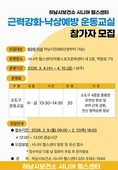 (플러스인뉴스) 하남시보건소는 오는 2월 9일부터 12일까지 시니어를 대상으로 ‘2026년 근력강화,낙상예방 운동교실 1기’ 참여자를 모집한다. 근력강화,낙상예방 운동교실은 노화로 인해 저하되기 쉬운 근지구력과 균형능력 향상을 통해 일상생활 속 낙상 위험을 줄이고, 신체기능 유지와 활기찬 노후생활을 지원하기 위해 마련됐다. 이번 모집에서는 60세 이상(1966년생 이전 출생자) 하남시민 20명을 추첨으로 선발한다. 선정된 참여자들은 필라테스 링, 스트레칭 밴드, 폼롤러, 스텝박스 등 4종의 소도구를 활용해 유연성 향상, 코어 근육 강화, 전신 혈액순환 개선을 중심으로 한 운동 프로그램에 참여하게 된다. 프로그램은 시니어 헬스센터에서 3월 4일부터 4월 10일까지 매주 수요일과 금요일, 총 12회에 걸쳐 운영된다. 참여 신청은 시니어 헬스센터 방문 또는 전화로 가능하다. 시 관계자는 “이번 프로그램이 시니어의 신체기능 향상과 건강한 일상 유지에 실질적인 도움이 될 것으로 기대한다”며 “집단 참여형 운동을 통해 또래 간 소통을 활성화하고, 정서적 안정과 삶의 만족도 향상에도 기여할 것”이라
