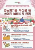 (플러스인뉴스) 양평군은 가을철을 맞아 대기오염 방지 및 산불 예방을 위해 영농부산물 및 폐기물 불법소각에 대한 집중 단속 계획을 수립하고, 본격적인 단속에 나선다고 14일 밝혔다. 이번 집중 단속은 산림청 산불조심 기간(11월 1일부터 12월 15일까지)에 앞서 선제적으로 10월 15일부터 12월 15일까지 운영되며, 단속 대상은 산림 지역과 인접한 주거지, 농경지 등이다. 불법투기 감시원들은 논·밭두렁 및 영농부산물 발생 지역을 중심으로 불법소각 행위를 집중 점검할 예정이며, 적발 시 산림보호법(과태료 50만 원 이하) 및 폐기물관리법(과태료 100만 원 이하)에 따라 처분할 계획이다. 또한, 감시원들은 지역 경로당과 마을회관 등을 방문해 영농부산물의 올바른 처리 방법을 안내하고, 불법소각 금지 홍보물을 배부하는 등 불법소각 근절에 만전을 기할 예정이다. 전진선 양평군수는 “불법소각은 미세먼지 등 환경오염의 주요 원인일 뿐 아니라, 대형 산불과 같은 재난사고로 이어질 수 있다”며 “불법소각을 근절하기 위해서는 군민 여러분의 적극적인 협조가 필요하며, 불법행위 발견 시 즉시 신고해 주시길 바란다”