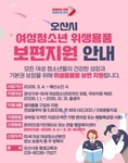 (플러스인뉴스) 오산시는 관내 11세부터 18세까지의 여성청소년을 대상으로 '여성청소년 위생용품 보편지원 사업'을 추진한다고 밝혔다. 이번 사업은 여성청소년의 경제적 부담을 완화하고 건강한 성장 환경을 조성하기 위해 생리용품 구입비를 지원하는 사업이다. 다만 여성가족부가 시행하는 기초생활수급자·차상위계층·한부모가족 대상 여성청소년 생리용품 바우처 지원사업과는 중복 지원이 불가하다. 지원 대상은 오산시에 거주하는 11세부터 18세까지의 여성청소년으로, 등록 외국인과 국내거소신고자 등 외국인 청소년도 포함된다. 지원 금액은 1인당 월 1만1,800원, 연 최대 14만2,000원이며 오산시 경기지역화폐 모바일 ‘오색전’으로 지급된다. 지원금은 오산시 내 지역화폐 가맹 편의점인 CU, GS25, 세븐일레븐, 이마트24 등에서 사용할 수 있으며, 배달특급 앱을 통한 온라인 구매도 가능하다. 신청 기간은 2026년 3월 4일부터 예산 소진 시까지이며, 온라인 신청은 3월 4일 오전 10시부터 3월 31일 오후 6시까지 가능하다. 신청은 경기민원24 온라인 신청 또는 주소지 관할 행정복지센터 방문을 통해 할 수