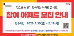(플러스인뉴스) (재)오산문화재단은 2026년 찾아가는 문화나눔 사업의 일환으로 추진되는 '2026 상반기 찾아가는 아파트 콘서트' 지원 사업에 참여할 오산시 관내 아파트를 모집한다고 밝혔다. '찾아가는 아파트 콘서트'는 아파트 자체 행사와 연계해 공연 무대와 공연팀을 지원하는 사업으로, 입주민들이 직접 지역 문화예술 행사를 기획·운영하고 향유하는 능동적인 문화 주체로 성장할 수 있도록 돕기 위해 마련됐다. 재단은 올해 상반기인 4월 24일부터 6월 30일 사이 시화전, 야시장, 장기자랑, 북 페스티벌, 각종 캠페인 등 입주민 대상 자체 행사를 계획하고 있는 아파트가 본 사업을 활용할 경우, 행사 운영의 완성도를 높이는 것은 물론 예산 절감에도 도움이 될 것으로 기대하고 있다. 상반기 참여 신청 접수는 1월 30일(금)부터 2월 12일(토)까지 진행되며, 서류 검토를 거쳐 2월 24일 상반기 참여 아파트 4곳을 선정하기 위한 심의가 실시될 예정이다. 선정 결과는 2월 27일 이내 오산문화재단 홈페이지를 통해 공고되며, 세부 일정은 재단 사정에 따라 변경될 수 있다. 심의 과정에서는 아파트 자체 행사
