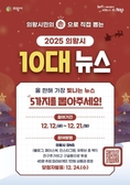 (플러스인뉴스) 의왕시는 올 한 해 시정 각 분야의 주요 뉴스 중 시민들의 공감을 얻은 뉴스를 선정하기 위해‘의왕시 10대 뉴스’온라인 투표를 진행한다. 투표 대상 뉴스는 ▲백운호수 개장 ▲의왕시 최초 종합병원 유치 성공 ▲부곡커뮤니티센터 착공 ▲철도박물관 전면 리모델링 추진 ▲의왕시 야구장 및 파크골프장 개장 ▲노인복지부문 국무총리상 수상 등 20건이다. 투표 기간은 12월 12일부터 21일까지 10일 간이며, 투표는 홍보 전단의 큐알코드 또는 시 홈페이지 배너를 경유해 구글폼으로 접속하거나, 의왕시 사회관계망서비스(블로그, 페이스북, 인스타그램) 링크를 통해 가능하다. 시민 누구나 투표에 참여할 수 있으며, 뉴스 20건 중 5개를 선택하면 된다. 아울러, 투표에 참여하고 의왕시 사회관계망서비스에 친구 추가한 사람 중 45명을 추첨해 1만원권의 상품권을 지급하는 이벤트도 함께 진행한다. 시에서는 득표수가 높은 10건의 뉴스를 ‘2025년 의왕시 10대뉴스’로 선정해 이달 말 시 홈페이지 등을 통해 결과를 발표할 예정이다. 김성제 시장은 “이번 투표는 올해 의왕시에 있었던