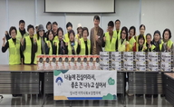 (플러스인뉴스) 지난 15일, 안성종합사회복지관은 일죽초등학교 3·4학년 학생들이 정성껏 만든 된장 70개를 전달받았다. 이번 된장 나눔 활동은 일죽초등학교 3·4학년 학생들이 1년간 진행한 체험형 교육 프로그램의 일환으로, '탄소중립'과 '지역사회 나눔 실천'을 주제로 진행됐다. 학생들은 지역 농가인 서일농원과 협력해 콩을 삶고, 메주를 만들고, 숙성 과정을 거쳐 된장을 완성했다. 이 과정에서 학생들은 환경의 소중함과 먹거리의 가치, 그리고 이웃과 나누는 기쁨을 배웠다. 이날 전달된 된장은 학생들이 지역사회에 따뜻한 선물이 되고자 준비한 나눔 물품으로, 안성종합사회복지관은 이를 지역 내 도움이 필요한 이웃들에게 전달할 예정이다. 서용식 일죽초등학교장은 “1년 동안 성실하게 참여한 학생들이 매우 자랑스럽다”며 “학생들의 정성과 마음이 안성종합사회복지관을 통해 지역사회에 잘 전달되길 바란다”고 전했다. 박희열 안성종합사회복지관 관장은 “아이들의 손으로 직접 만든 된장을 전달받게 되어 더욱 뜻깊다”며 “학생들의 따뜻한 나눔의 마음이 지역사회 곳곳에 전해질 수 있도록 소중히 전달하겠다”고 밝혔다. &nb