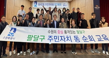 (플러스인뉴스) 수원시 팔달구 화서2동 주민자치회는 지난 13일, 11월 정기회의와 함께 ‘참여를 이끄는 소통 리더십 향상’을 주제로 한 주민자치 위원의 리더십 역량 강화 교육을 진행했다. 특히 이번 교육에는 김창범 전 팔달구청장이 강사로 초청되어 오랜 행정 경험을 바탕으로 주민과의 소통 및 협력 중심의 리더십에 대해 강연했다. 교육 후 진행된 정기회의에서는 ▲2026년도 마을자치 리빙랩 사업(안) ▲화서2동 주민자치회 활성화사업 추진 ▲12월 정기회의 일정 등 다양한 안건이 논의됐다. 양순옥 화서2동 주민자치회장은 “행정 현장의 실제 사례를 통해 리더십의 의미를 다시 생각해볼 수 있었다”며 “주민자치회 활동에 큰 도움이 되는 유익한 시간이었다”고 소감을 전했다. 화서2동 주민자치회는 이번 정기회의와 교육을 계기로 위원들의 역량을 강화하고, 주민이 중심이 되는 협력적 자치 실현을 위해 다양한 소통 프로그램을 지속적으로 발굴‧추진할 계획이다. [뉴스출처 : 경기도 수원시]