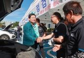 (플러스인뉴스) 이상일 용인특례시장은 21일 역북동 가상현실 스포츠체험센터 주차장에서 열린 장애인차량 무상점검 행사를 찾아 경기도자동차전문정비사업조합 용인시지회 조합원을 격려했다. 이날 행사는 용인시지회 주최‧주관으로 다가오는 추석을 앞두고 장애인 운전자가 안전하게 차량을 운전할 수 있도록 마련됐다. 이상일 시장은 현장에서 “추석을 앞두고 장애인들을 위해 일요일임에도 나오셔서 매우 뜻깊은 행사를 진행해 주시는 경기도자동차전문정비사업조합 용인시지회 회원님들께 감사드리며, 조합의 발전을 기원드린다”고 말했다. 용인시지회 조합원 등 70여 명은 이날 용인시 등록 장애인차량을 대상으로 브레이크 라이닝‧타이어‧배터리 등의 상태를 점검하고, 각종 전구류와 와이퍼‧에어컨 필터 등을 교환했다. 또 에어컨 가스 점검‧소독을 비롯해 엔진오일‧미션오일‧브레이크오일 등 오일류와 부동액점검 및 냉각수 보충, 전조등‧미등‧브레이크등 등 각종 전구류 점검‧교환하는 등 각종 소모품을 교체‧보충했다. [뉴스출처 : 경기도용인시]