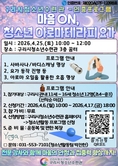 (플러스인뉴스) 구리시청소년재단 청소년수련관은 ‘마음 ON, 아로마테라피 요가’ 프로그램 참가자를 4월 6일 오전 10시부터 4월 17일 오후 6시까지 모집한다고 밝혔다. ‘마음 ON, 아로마테라피 요가’ 프로그램은 학업과 일상에 지친 청소년들에게 심리적 안정과 휴식을 제공하기 위해 오는 4월 25일 오전 10시부터 12시까지 운영된다. 대상은 관내 초등학교 4학년부터 중학교 3학년까지다. 모집 인원은 선착순 12명이며, 신청은 구리시청소년수련관 홈페이지(알림 마당 → 청소년활동 프로그램 신청)를 통해 가능하다. 이번 프로그램은 최근 청소년들의 스트레스 수준이 높아지는 상황을 반영해 신체 활동인 요가와 심리 안정 효과가 있는 아로마치료법을 접목해 기획됐다. 단순한 운동을 넘어 청소년들이 자신의 감정을 돌아보고 스스로 조절할 기회를 제공하는 데 중점을 두고 있다. 주요 내용은 기본 요가 동작과 아로마 오일을 활용한 명상(바디 스캐닝, 사바사나)으로 구성되며, 이를 통해 참여 청소년들의 자기조절 능력 향상과 스트레스 완화 효과가 기대된다. 강종일 구리시청소년재단 대표이사는 “청소년들이 신체