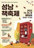 (플러스인뉴스) 성남시는 오는 10월 25일 오전 10시~오후 5시 분당 율동공원 내 잔디광장에서 ‘2025 성남 책 축제’를 연다. 시는 개방형 야외 도서관인 책 읽는 광장 도서관을 율동공원 내 3곳을 포함해 모두 17곳에 조성해 운영 중인 가운데 도서관의 문턱을 낮춰 시민들이 자유롭게 책을 접하는 문화를 확산하려고 올해 처음 기획한 축제다. 행사장은 책 읽는 공간(쉼표, 리딩존), 체험 공간, 놀이 휴식공간, 공연 무대장으로 꾸며진다. 쉼표, 리딩존은 △책 읽는 광장 도서관을 홍보하는 책광장 북크닉 △ 차를 마시며 책을 읽을 수 있는 북앤티 클래스 △무선 헤드셋을 이용해 오디오북을 청취할 수 있는 사운드 북라운지가 마련된다. 체험 공간은 총 14개 공공도서관과 작은도서관협의회, 성남 독서동아리의 다양한 독후 활동을 체험할 수 있는 부스를 설치 운영한다. 놀이 휴식공간은 시민 누구나 책 속의 그림을 그릴 수 있는 대형 캔버스(7m*7m) 그림 활동공간, 그림책 ‘브로콜리지만 사랑받고 싶어’ 속 원화를 전시하는 그림책 길(10m)을 운영한다. 광장 무대에선 박준 시인, 김신