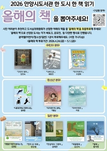 (플러스인뉴스) 안양시는 2026년 한 도시 한 책 읽기 ‘올해의 책’ 선정을 위한 시민 선호도 조사를 오는 5월 1일까지 온·오프라인으로 진행한다고 24일 밝혔다. 올해로 5년 차를 맞이한 ‘한 도시 한 책 읽기’는 시민들이 같은 책을 읽고 공통의 독서 경험을 나누는 독서 운동이다. 시는 본격적인 투표에 앞서 문학가, 교수, 작가 등 각계 전문가로 구성된 도서심의위원회를 열고 어린이 분야 3권, 청소년 분야 3권, 일반분야 5권 등 총 11권의 후보 도서를 엄선했다. 분야별 후보작은 다음과 같다. (서명 가나다순) ▲어린이 분야는 '건전지 엄마'(강인숙), '나비도감'(최현진), '친구 자판기'(조경희) ▲청소년 분야는 '나를 발견하는 인류학 수업'(함세정), '내가 없던 어느 밤에'(이꽃님), '라이프 재킷'(이현) ▲일반 분야는 '괜찮은 어른이 된다는 것'(김경집), '안녕이라 그랬어'(김애란), '제철행복'(김신지), '먼저 온 미래'(장강명), '할매'(황석영)다. 이번 시민 선호도 조사를 통해 각 분야에서 1권씩 최다 득표를 한 도서가‘올해의 책’으로 최종 선정된다. 결과는 오는 5월 8일 안양시도서