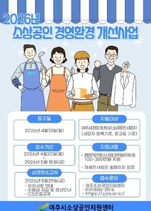 (플러스인뉴스) 여주시소상공인지원센터는 여주시 소상공인의 경영환경 개선과 사업 경쟁력 강화를 위해 '2026년 소상공인 경영환경 개선사업'을 추진한다고 밝혔다. 이번 사업은 여주시 관내 소상공인의 점포 환경을 개선하고 고객 만족도를 높여 지역 상권 활성화를 도모하기 위해 마련됐다. 지원 대상은 공고일 기준 여주시에서 사업장을 운영 중이며, 창업 3년 이상인 소상공인이다. 선정된 업체에는 점포 환경 개선과 시스템 제작 지원 등 경영환경 개선에 필요한 비용이 지원되며, 업체당 100만 원에서 최대 300만 원까지 지원받을 수 있다. 공고일은 2026년 4월 13일이며, 접수 기간은 4월 20일부터 5월 15일까지다. 또한 5월 29일에는 선정 업체를 대상으로 지원금 지급 안내와 함께 사업 설명회 및 CS 친절 교육이 진행될 예정이다. 여주시소상공인지원센터 유준희 센터장은 “이번 경영환경 개선사업을 통해 소상공인의 경쟁력을 높이고 지역 상권에 활력을 불어넣을 수 있기를 기대한다”며 “앞으로도 실질적인 도움이 되는 다양한 지원사업을 지속적으로 추진해 나가겠다”고 말했다. [뉴스출처 : 경기도 여주시]