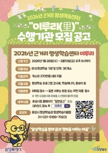(플러스인뉴스) 화성특례시는 오는 28일부터 2월 13일까지 2026년 근거리 평생학습센터 ‘이루리’ 운영 지원사업의 수행기관을 공개 모집한다고 23일 밝혔다. ‘이루리 사업’은 시민들이 가까운 공간에서 배움에 참여할 수 있도록 생활권 내의 유휴공간과 지역 기반 시설을 활용한 근거리 평생학습센터를 선정하고, 다양한 평생학습 프로그램과 공동체 활동을 지원하는 사업이다. 수행기관으로는 관내 평생교육기관 및 관련 단체를 대상으로 총 35개소를 선정하며, 선정된 수행기관에는 기관별로 370만 원의 사업비가 지원된다. 사업 운영 기간은 2026년 4월부터 12월까지이다. 사업비 집행 및 정산 등 보조금 관리 절차는 지방보조금관리시스템(보탬e)을 통해 투명하게 운영될 예정이다. 자세한 사항은 화성특례시청 홈페이지 일반공고 게시판 및 화성특례시 평생학습관 홈페이지에서 확인하거나 화성특례시 평생학습과 평생학습지원팀으로 문의하면 된다. 신동호 평생학습과장은 “이루리 사업은 시민들의 일상 가까이에서 배움이 이뤄질 수 있는 지역 기반 평생학습환경을 조성하는 데 의미가 있다”며 “현장 경험과 전문성을 갖춘