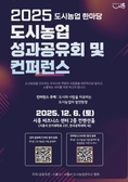 (플러스인뉴스) 시흥시는 오는 12월 6일 한국공학대학교 내 시흥비즈니스센터 컨벤션홀에서 ‘2025년 도시농업 한마당 성과공유회 및 콘퍼런스’를 개최한다. 이번 행사는 한 해 동안 추진한 도시농업 정책과 활동을 시민과 공유하고, 도시농업이 나아가야 할 미래 발전 방향을 전문가들과 함께 논의하기 위해 마련됐다. 행사는 오전 11시 성과공유회로 시작되며, 시흥시는 2025년 도시농업 주요 사업 추진 결과를 발표하고 시민행복텃밭, 학교 치유텃밭, 찾아가는 도시농업 프로그램 등 우수사례 운영자의 발표를 통해 현장의 성과를 공유한다. 오후 2시부터는 ‘도시와 사람을 치유하는 도시농업의 발전 방향’을 주제로 도시농업 콘퍼런스가 진행된다. 전통예술 식전 공연을 시작으로 내빈 소개, 국민의례, 유공자 표창, 성과 영상 시청, 개회사와 축사가 이어진다. 기조 발제는 건국대학교 박신애 교수가 맡아 도시농업과 치유농업의 미래 전략을 제시하며, 이어 도시농업 전문가 6명이 참여하는 주제 토의에서 정책 방향과 시민 참여 확대 방안에 대해 심도 있는 논의가 이뤄진다. 시는 그동안 도시농업을 통해 ▲치유농업 프로그램 확대 ▲